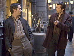 Ad attrarre in The Prestige è il doppio gioco del prestigio, condotto e tenuto fino alla fine, che incastra la struttura narrativa con la trama, secondo una necessità illusionistica dichiarata già dalla prima scena. Cutter, anziano assistente di scena, spiega a una bambina, che si saprà poi essere figlia di uno dei due protagonisti, le fasi di un trucco: la promessa, la svolta, il prestigio. La sequenza nel film però non è mai rigidamente rispettata: nell’attimo in cui il prestigio scende dal palcoscenico e investe la storia intera tutti i momenti si duplicano e vanno a crearsi punti di svolta che mettono irrimediabilmente in crisi la promessa iniziale. Si inserisce poi, mescolandosi, quello che doveva essere un elemento esterno alla messa in scena: il segreto.