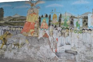 Girato l’angolo in via dei mineros, c’è il Murale degli Assenti che ritrae Gesù Cristo su un trono portato da leoni e un corteo di “uomini d’onore” genuflessi. “E’ un graffito che ha 25 anni e raffigura i caduti del narcotraffico mentre sulla gran croce di legno, posta di fronte, ci sono scritti i soprannomi dei giovani morti di recente”, spiega Alfonso. L’iniziativa, emblematica delle realtà dure e contraddittorie del quartiere, è nata dall’idea di un pittore che, quando la violenza ha cominciato a rifarsi sentire, s’è accordato con le famiglie per ricordare così i caduti di ciascuna.