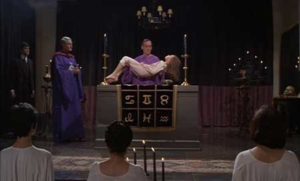 Nel tentativo dunque di porre ordine in una materia tanto sfuggente, un criterio potrà ravvisarsi – con tutta l’elasticità del caso – nella tipologia di setta, in riferimento cioè all’oggetto del “culto” in scena. E una prima e fondamentale categoria riguarderà ovviamente le sette religiose – le più diffuse senz’altro nel tessuto sociale, anche se non necessariamente le più rappresentate al cinema. Da un primo fronte potremo anzi distinguerle in due ampi filoni: le sette emerse dall’interno dell’Occidente che conosciamo, a espressione di ipotetici revival pagani o invece di istanze criptoecclesiali, giocate sul rapporto fanatismo/plagio o sulla resistenza alla chiese dominanti; e le sette venute dall’esterno, connotate in genere da aggressive e pittoresche forme di esotismo. Esotismo geografico, come nel caso di quelle d’importazione dall’Africa selvaggia o dal predatorio Oriente, secondo i più vieti stereotipi transitati attraverso il pelago della cultura popolare tra Otto e Novecento; ma anche esotismo cronologico, in riferimento a realtà del passato evocate nei film in costume, oppure sopravvissute o riemerse dal passato entro il grembo del nostro tempo, come il citato culto di Karnak dei film sulla Mummia.