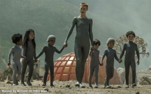 Anche nel campo del serial televisivo il cineasta britannico si era finora cimentato come produttore esecutivo, abbastanza defilato, in progetti efficaci come The Man in the High Castle, da P.K. Dick, e la prima stagione di The Terror, da Dan Simmons, o l’interessante ma purtroppo sfortunato Strange Angel ispirato all’omonima biografia dello scienziato-stregone Jack Parsons, sebbene un coinvolgimento più totale anche come showrunner e regista non fosse mai stato concesso. Con Raised by Wolves, serie ideata e sceneggiata da Aaron Guzikowski (già autore di Prisoners per Denis Villeneuve, della serie The Red Road, e del quasi ignorato remake di Papillon) e distribuita da HBO Max, invece si è finalmente messo in campo oltre che come produttore esecutivo, anche come regista dei primi due episodi (affidando i successivi, sotto la sua supervisione, ad altri, compreso suo figlio Luke). E’ un ritorno alla fantascienza a pieno titolo, recuperando tutti o gran parte dei temi affrontati nei suoi primi e più famosi film: gli androidi prima di tutto. Androidi in stile Ash di Alien, più che Roy di Blade Runner, con plasma bianco che scorre loro nelle vene e che schizza fuori al posto del sangue quando è il caso.