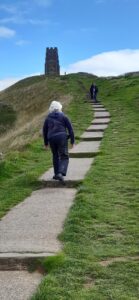 Glastonbury, agosto. Sotto un cielo grigetto – ma oggi non è prevista pioggia – ci regaliamo la passeggiata sul Tor, la collina sacra sopra la capitale magica dell’Inghilterra, dalla cui vetta si gode più prosaicamente una vista meravigliosa su tre contee diverse. La salita è agevole, col sentiero a gradini; per i cultori che abbiano tempo e voglia, c’è anche la possibilità di salire a spirale tramite i resti degli antichi sette terrazzamenti (di origine non chiara) che renderebbero il Tor una sorta di labirinto tridimensionale, qualunque valore uno intenda dargli.