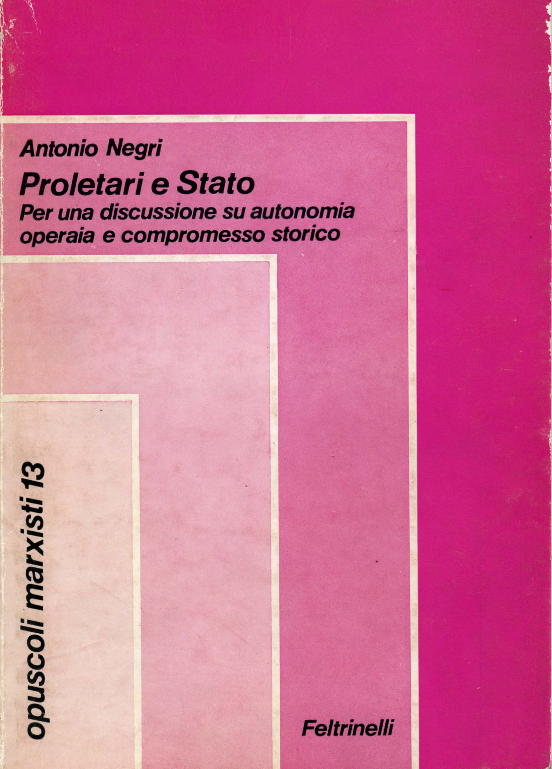 ueste tesi sono esposte in forma sistematica in A. Negri Proletari e stato. Per una discussione su autonomia operaia e compromesso storico, Milano 1976 (vedi in particolare la tesi n. 1: “Del proletario: spunti sulla nuova composizione di classe”). ↩
