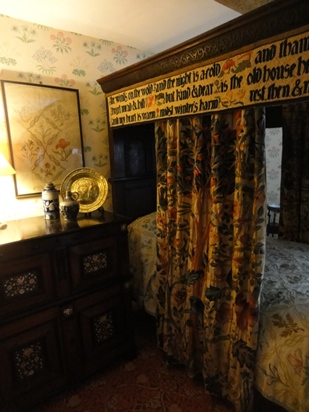 In queste stanze, troviamo una meravigliosa raccolta di oggetti e opere di Morris, di sua moglie Jane Burden – la Bellissima, la cui incredibile luce corre per tutta l’arte preraffaellita, ma è testimoniata parallelamente da un ricco corpus di fotografie – e di una serie di collaboratori. L’arredamento comprende gran parte dei mobili e molti dei famosi disegni tessili di Morris (esposti nella grande, luminosa soffitta dalle enormi travi) – tutto lasciato come alla sua morte. Nel piccolo cimitero a fianco della chiesetta locale di St. George, una tomba sobria accoglie l’artista e la moglie: visitarla per un omaggio è caro a chiunque ami quell’incredibile stagione.