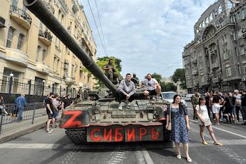 Conflitto che Prigožin decide di risolvere passando, letteralmente, all’offensiva in uno strano tentato colpo di stato che vede i mercenari conquistare Rostov sul Don senza sparare un colpo e passando una giornata a posare per selfie e strette di mano con i passanti entusiasti, mentre una colonna marcia verso Mosca.