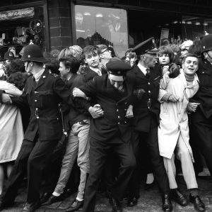Abbiamo lasciato questo strano proletariato, alle prese con se stesso, a cercare la risposta nel vento; lo ritroveremo di lì a poco con le armi in pugno prendere a calci e non solo ogni fantasma del passato. Ma ancora una volta il nemico non rimane a guardare, come il proletariato raccoglie il canto di vita che sta nella morte dei tre J, così il capitale comprende, percepisce, e neanche poco, che quell’inno di guerra può essere la sua morte, che la ‘danza degli spettri’ che si sta ballando nelle metropoli sarà la sua tomba. Piovra e camaleonte allo stesso tempo, corre ai ripari, sull’instabilità del proletariato della negazione, crea l’industria della trasgressione, per spezzare, annullare, privare quanto di nuovo, di rivoluzionario, di trasgressivo e trasgredente il linguaggio del proletariato si era dato; non solo, il progetto era ancora più ambizioso, si tratta di guidare, panificare, controllare anche la sfera dell’emotività, dell’io desiderante della classe, del suo bisogno ‘estetico’, insomma: si tratta di voler dare al proletariato, costruendogliela, una cultura trasgressiva ma già normata, dargli un’altra riserva in cui seppellirlo, dargli l’illusione di star cambiando la vita, mentre è solo la logica mortuaria della mercificazione che guida questa operazione.