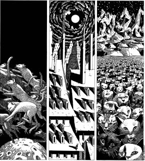 Il numero 19 di Métal Hurlant, uscito nel luglio del 1977, era costruito attorno all’universo creato da Moebius per Il Garage ermetico e per Arzach – battezzato, per l’occasione, Paradiso 9. I collaboratori della rivista furono chiamati a reinterpretarlo a modo loro e Philippe Manoeuvre fu incaricato dei redazionali. Nicole Claveloux disegnò la storia Una giornata in campagna, nella quale abbandonò il suo stile per riprendere con virtuosismo il vocabolario grafico di Moebius. ↩