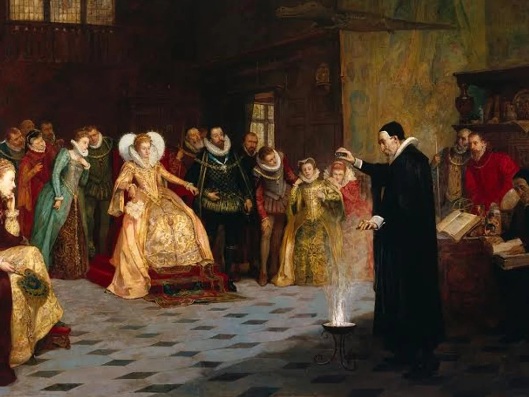 Riprendiamo il romanzo. Passeggiando lungo il ruscello Dee, John si lascia prendere dall’insoddisfazione e rivede il suo passato in Inghilterra, dal carcere con Green alla corte di Elisabetta, e poi a quella imperiale nel centro Europa… la sua prima moglie era stata la sua pestifera avversaria Lady Ellinor (storicamente, in realtà, la prima fu Katherine Constable, cui ne seguì per un anno una seconda dal nome non tramandato): di Ellinor disertava il capezzale per recarsi a incontrare Elisabetta. Eppure tante maschere non erano che la crisalide per far nascere finalmente il vero John Dee, “colui che conquista la Groenlandia, e assalta il mondo intero, il giovinetto coronato!”: e all’improvviso tutto gli diventa chiaro al punto da doverne scrivere una sintesi.