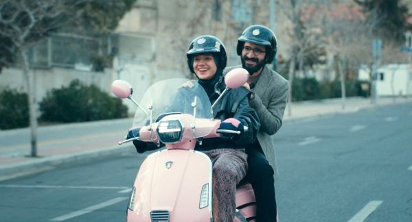 Il filiforme regista ha dalla sua una fortuna: Sadaf (Sadaf Asgari), lei solare, che alla guida di uno scooter rosa e coi capelli tinti di blu – la citazione del cinema italiano c’è, ma quasi scritta col rossetto su uno specchio – lo trasporta e lo conforta, mentre con civetteria si rifiuta di dirgli «ti amo» eppure fa qualsiasi cosa per lui, anche produrre un film senza sapere se incasserà. Poverino, il regista si vergogna di perdere i capelli, ma lei è un tesoro: «Della tua testa, per me conta cosa c’è dentro».