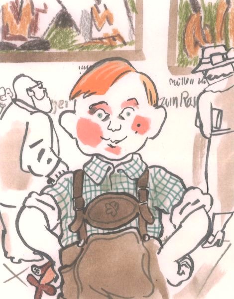 Al veleno c’è un antidoto, e anche quello si sdoppia. Quando il paffuto Lothar è piccolo vede il dipinto, non bada più al giocattolo con le svastiche che ha in mano, e invece scruta, riflette senza far caso ai commenti degli adulti. Poi sorride felice, anzi più che felice; golosetto, voglioso sino a toccare la tela con la manina, mentre qualcuno lo strattona, lo tira via e lo sgrida: «Lothar, cosa ci fai piantato davanti a questo orrore? Non toccare, è sporco».