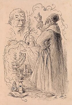 Ma dove idealmente vediamo ricapitolare tutta l’opera di Meyrink è nell’incontro successivo. Quando cioè Dee va a confrontarsi nientemeno che con il taumaturgo Rabbi Löw, conosciuto tramite l’ospite Hájek. Nato in Polonia o forse in Germania, al secolo Judah Loew ben Bezalel, noto anche come Yehudah ben Bezalel, Jehuda Löw o Judah Löw, il Maharal – cioè il Nostro Maestro il Rabbino Löw – di Praga (1520, o 1512, o 1526 – 1609), questo dottissimo cabalista, talmudista e matematico autore di opere sull’etica, la filosofia e la mistica ebraiche, nonché del Gur Aryeh al Ha-Torah, importante commento al commentario di Rashi alla Torah, e presunto discendente dalla dinastia davidica, visse tra la Polonia e Praga, dove morì. La sua statua, a opera di Ladislav Šaloun, viene eretta ne 1910 a Praga.
